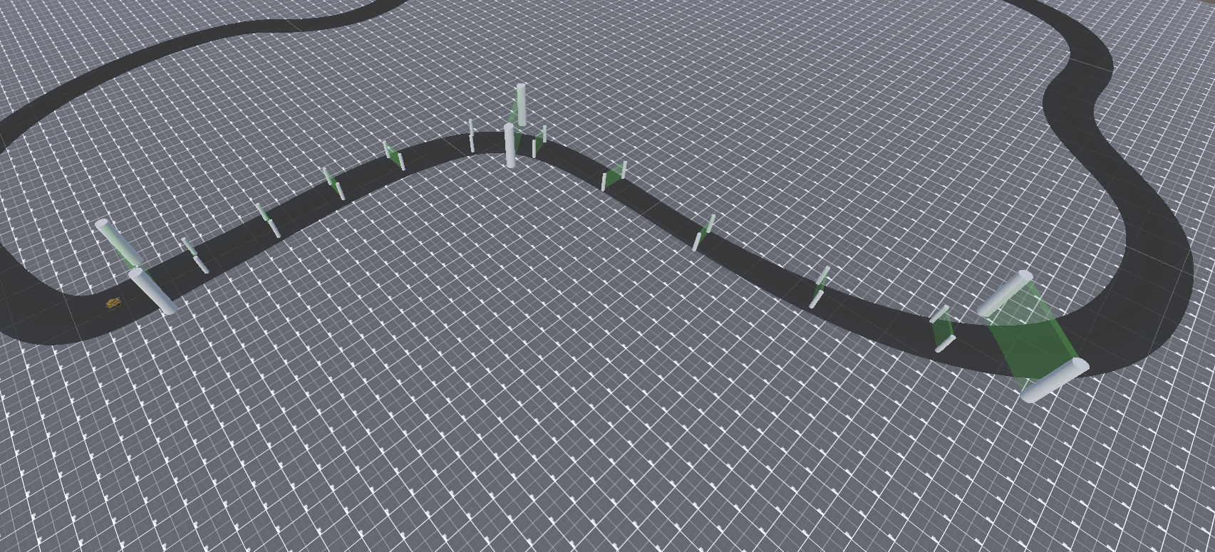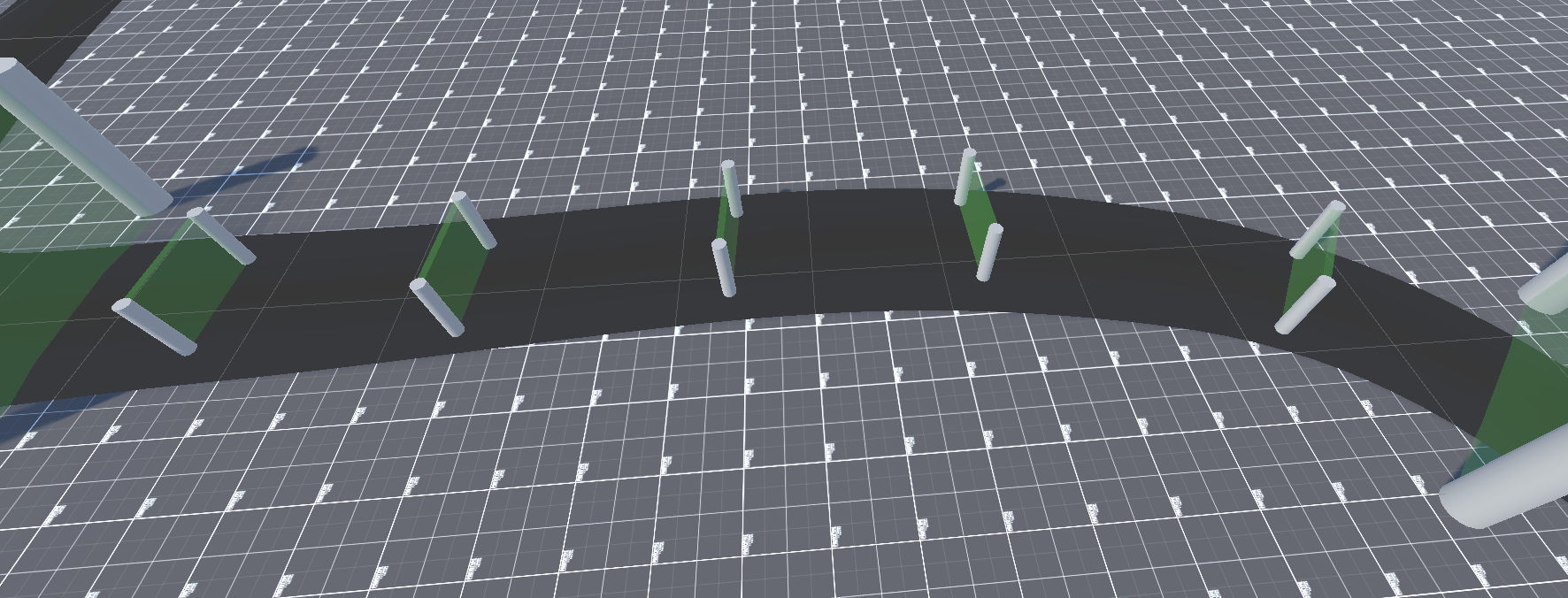 Next are the major checkpoints. These checkpoints track lap progression, making sure the player navigates key points in the track before counting it as a completed lap. Unlike the minor checkpoint, these checkpoints mush all be navigated through, and missing one will case an imminent wrong way alert. While there are many minor checkpoints, there will be 3 major checkpoints, one at the start/finish line and 2 more at each third of the track. This still gives plenty of room for shortcuts while still make sure the player can’t just cross the finish line 3 times and win.